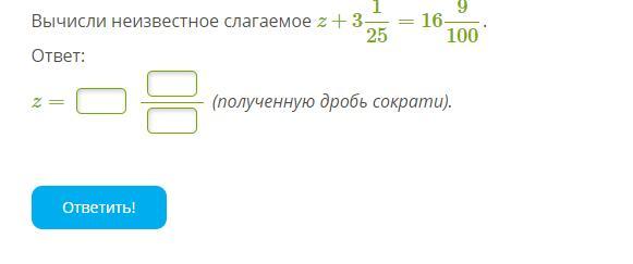 Вычисли неизвестное слагаемое z+3 1/25=16 9/100.