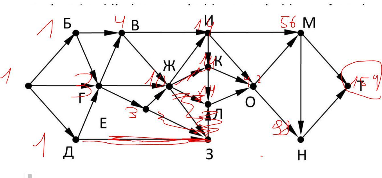 2) На рисунке – схема дорог, связывающих города А, Б, В, Г, Д, Е, Ж, З, И, К, Л, М, Н, O, Т. По каждой дороге можно двигаться только в одном направлении, указанном стрелкой. Сколько существует различных путей, ведущих из города А в город Т и проходящих через город И?
