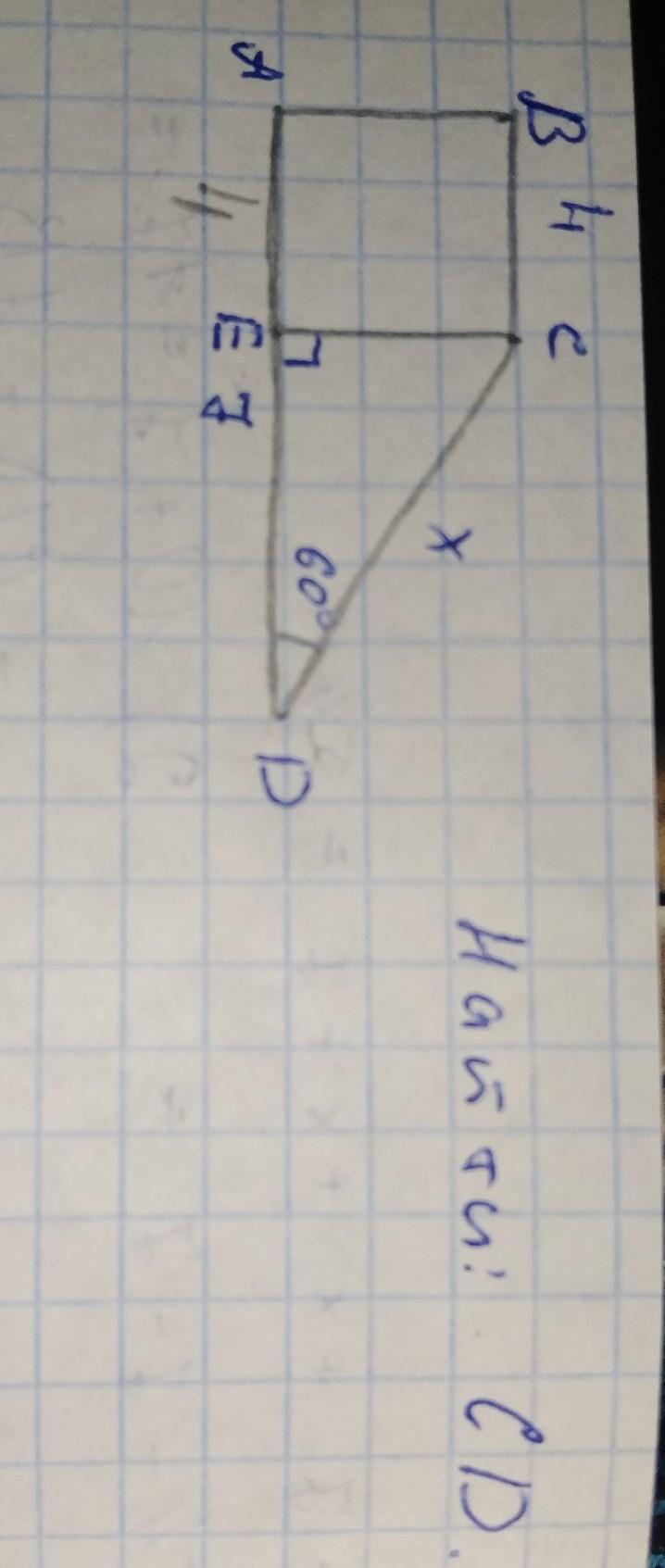 Катет, лежащий против угла 30° равен половине гипотенузы. Катет ED = 7, значит гипотенуза CD = 14.