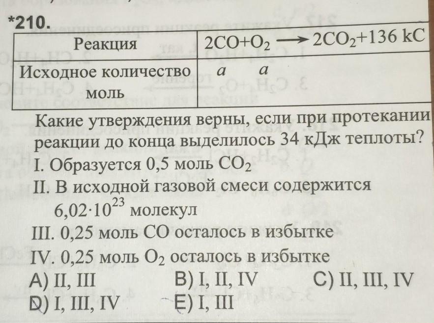 Из УХР видно, что в реакцию вступит ¹/₂n(O2) или ¹/₂*0,5 = 0,25 моль, а т.к. исходя из условия V(CO)=V(O2) = a, или n(CO)=n(O2), кислород взят в избытке в 2 раза, поэтому 0,5 моль - 0,25 моль = 0,25 моль кислорода останется после реакции. Таким образом, четвертое утверждение верно.