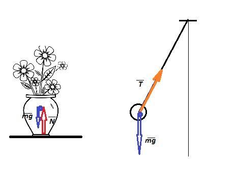 Изобразите силы, действующие на возу, стоящую на столе; действующую на металлический шарик, подвешенный на нити.