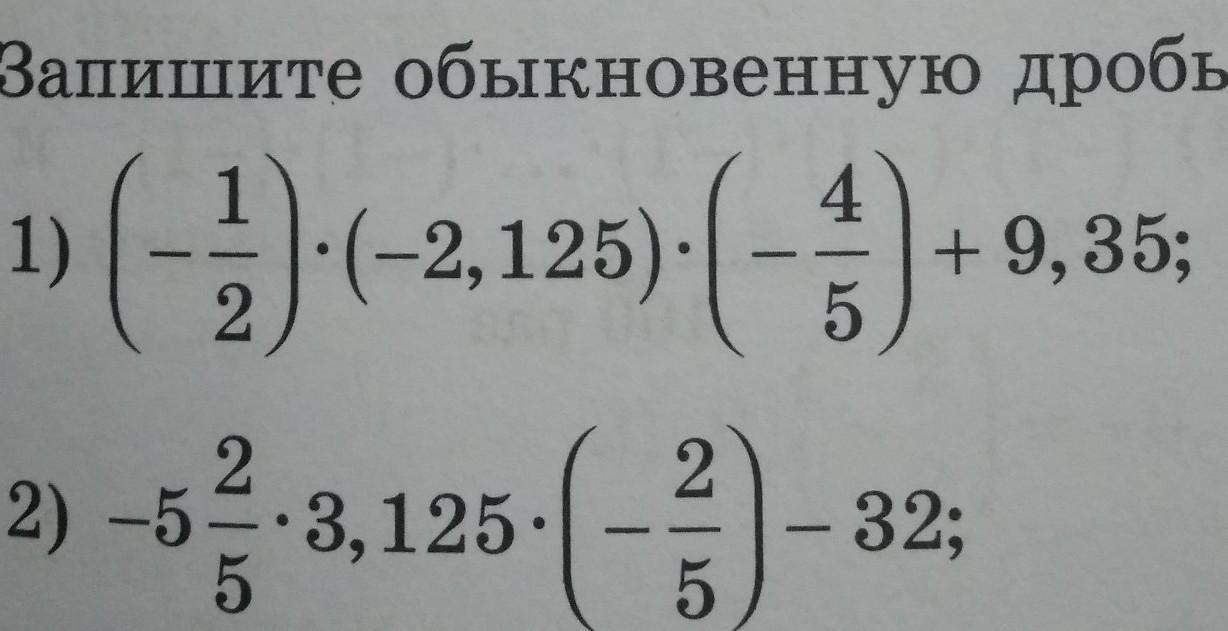 1) ( - 1/2) × ( - 2,125) × ( - 4/5) + 9,35 = ( - 1/2) × ( - 2целых 1/8) × ( - 4/5) + 9целых 7/50 =