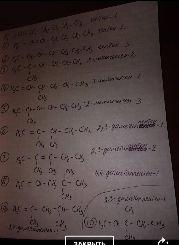 Составить формулы изомеров Гептена
