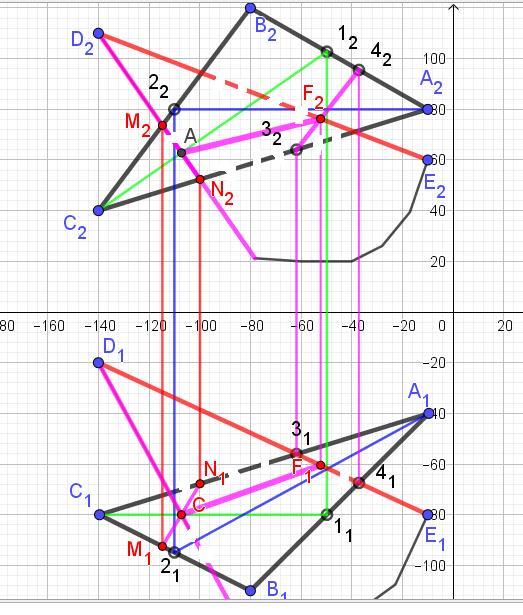 Решение во вложении. Осталось только раскрасить видимую часть перпендикулярной плоскости.