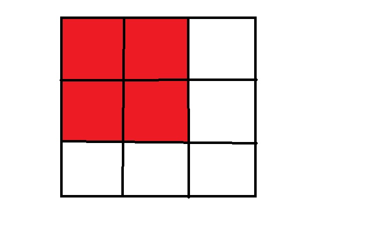 Вот пожалуйсто решение, конечно не очень ровно, но... щёлкни чтоб открыть, а вообще можно не только так, но и просто в таком квадрате закрасить 4 любых квадратика!