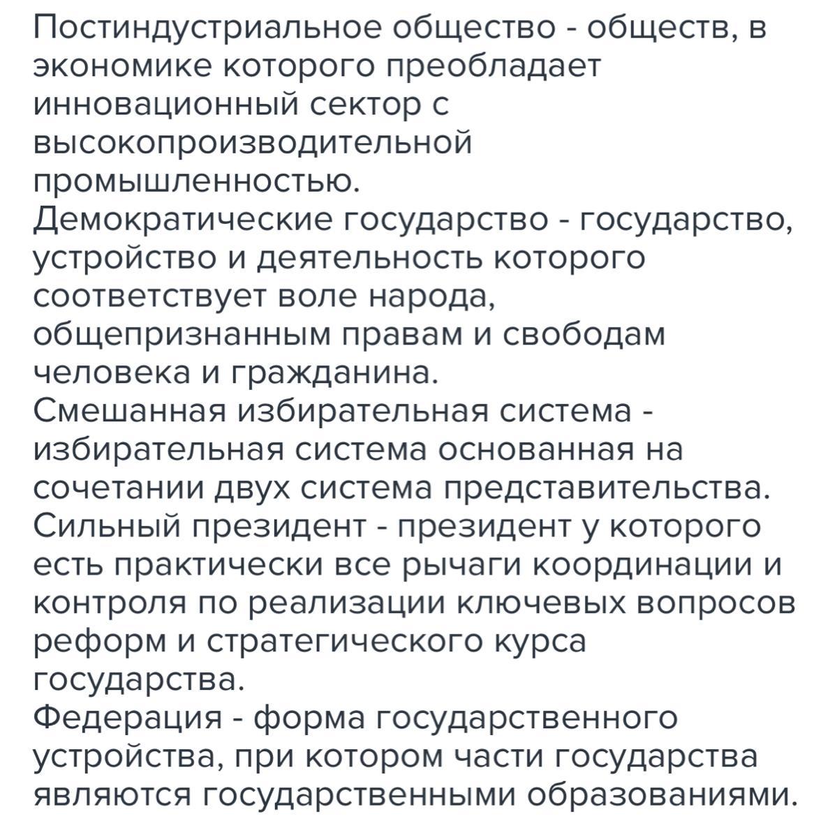 Постиндустриальное общество, демократическое государство, смешанная избирательная система, республика, сильный президент,федерация