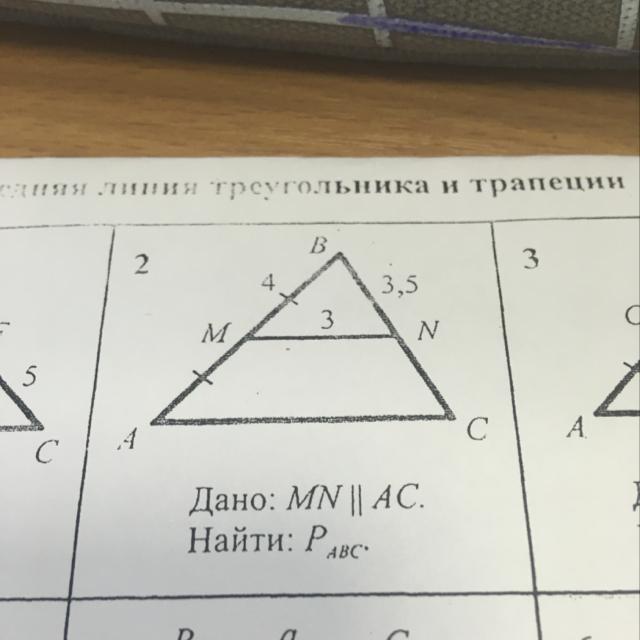 Объяснение:т.к. АМ=МВ и МN║AC, то АС- средняя линия ΔАBC ,AC=2MN, AC=6; AB=2MB=8;BC=2BN=3,5·2=7;