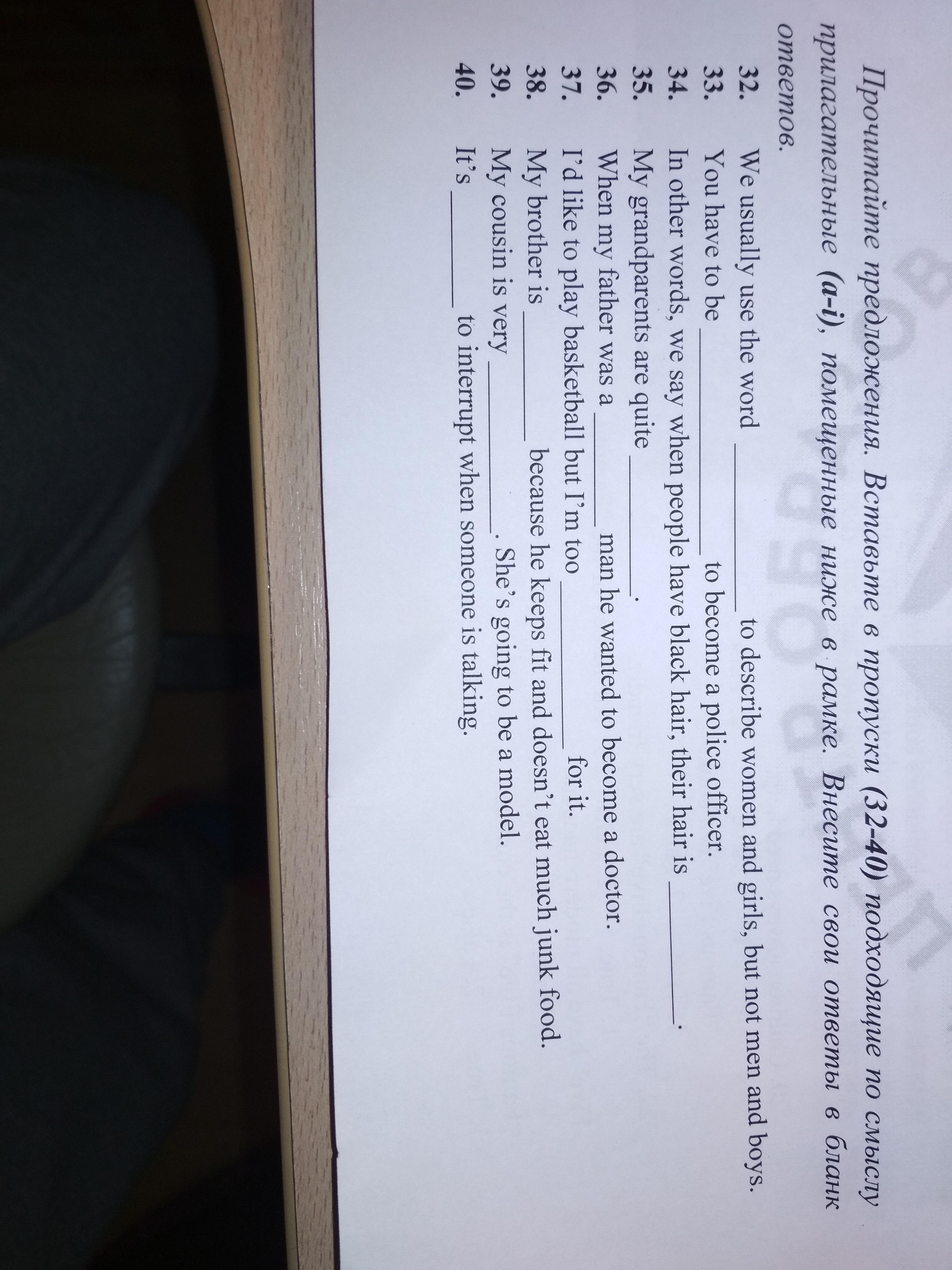 Прочитайте предложения. Вставьте в пропуски подходящие по смыслу прилагательные (a-i), помещенные ниже в рамках. Внесите свои ответы в бланк ответов.