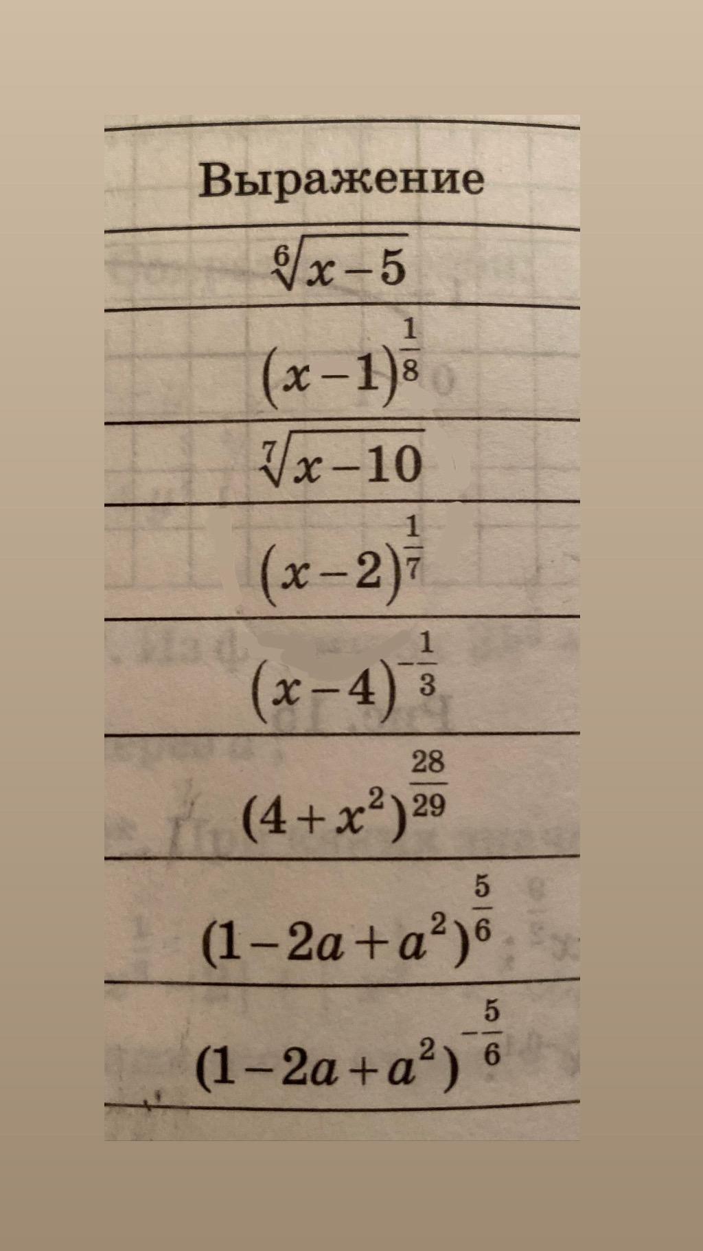 Помогите, пожалуйста!!! 15 баллов! Найдите область определения каждого выражения