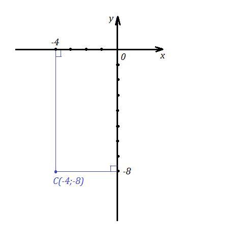 Точка С(-4;-8). Значит абсцисса х=-4 , а ордината у= -8 .