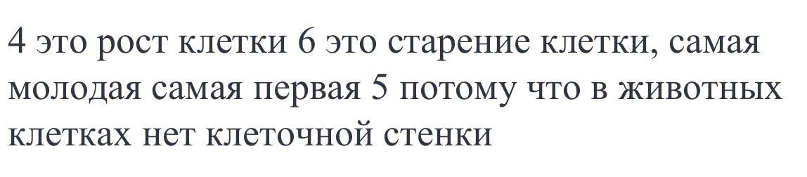 4 это рост клетки 6 это старение клетки, самая молодая самая первая 5 потому что в животных клетках нет клеточной стенки