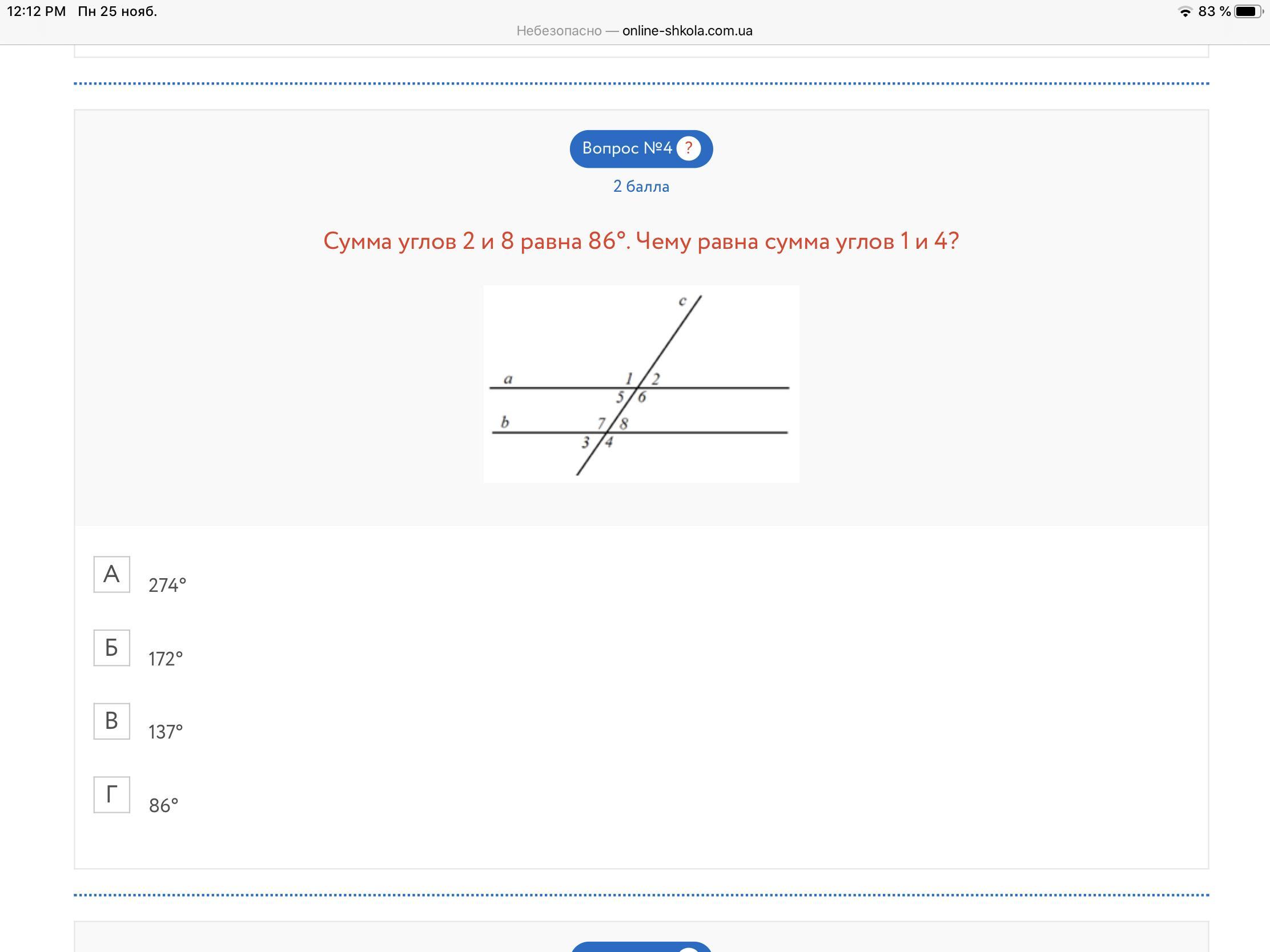 ∠1+∠4=137*2=274° - это ответ.