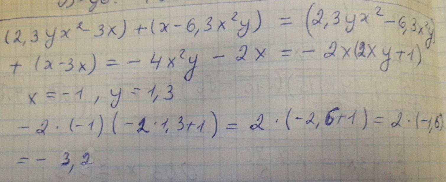 Найдите значение выражения (2,3yx²-3x)+(x-6,3x²y)