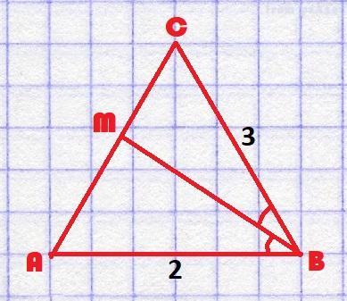 в треугольнике АВС со сторонами АВ=2 см, ВС=3см и АС=3 см проведена биссектриса ВМ Найдите длины АМ и МС