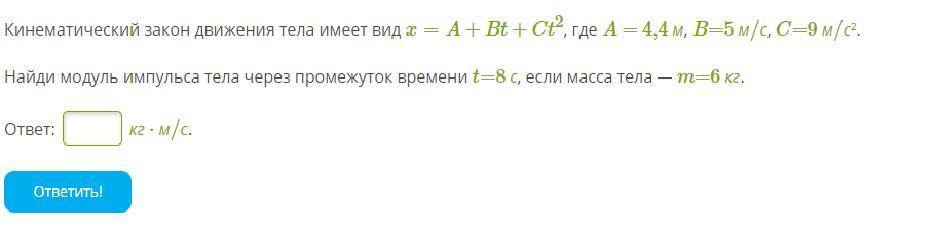 Тогда модуль импульса тела в данный момент времени равен: