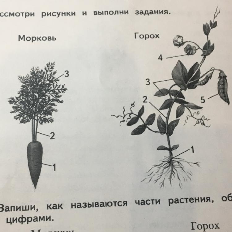 А) запиши, как называются части растения, обозначенные цифрами.