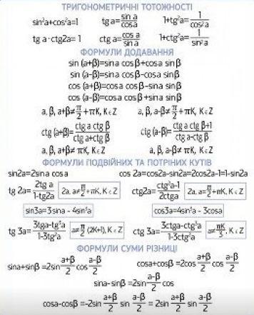 основные формулы тригонаметрии