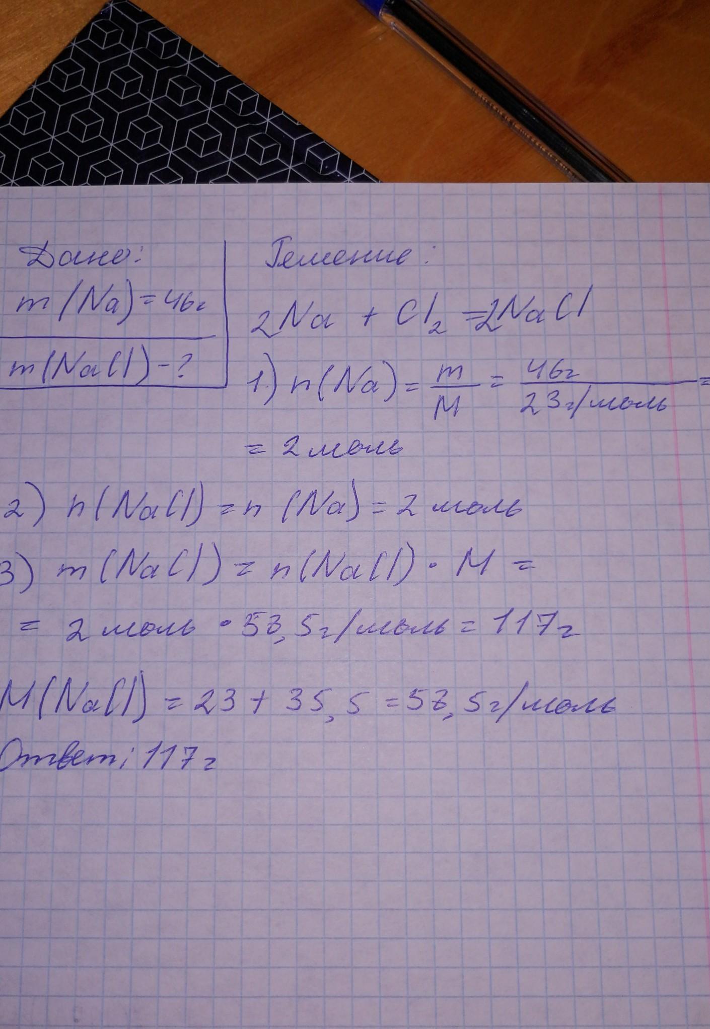 Вычислите массу поваренной соли, которая может быть получена при взаимодействии 46 г натрия с хлором. ( с решением)