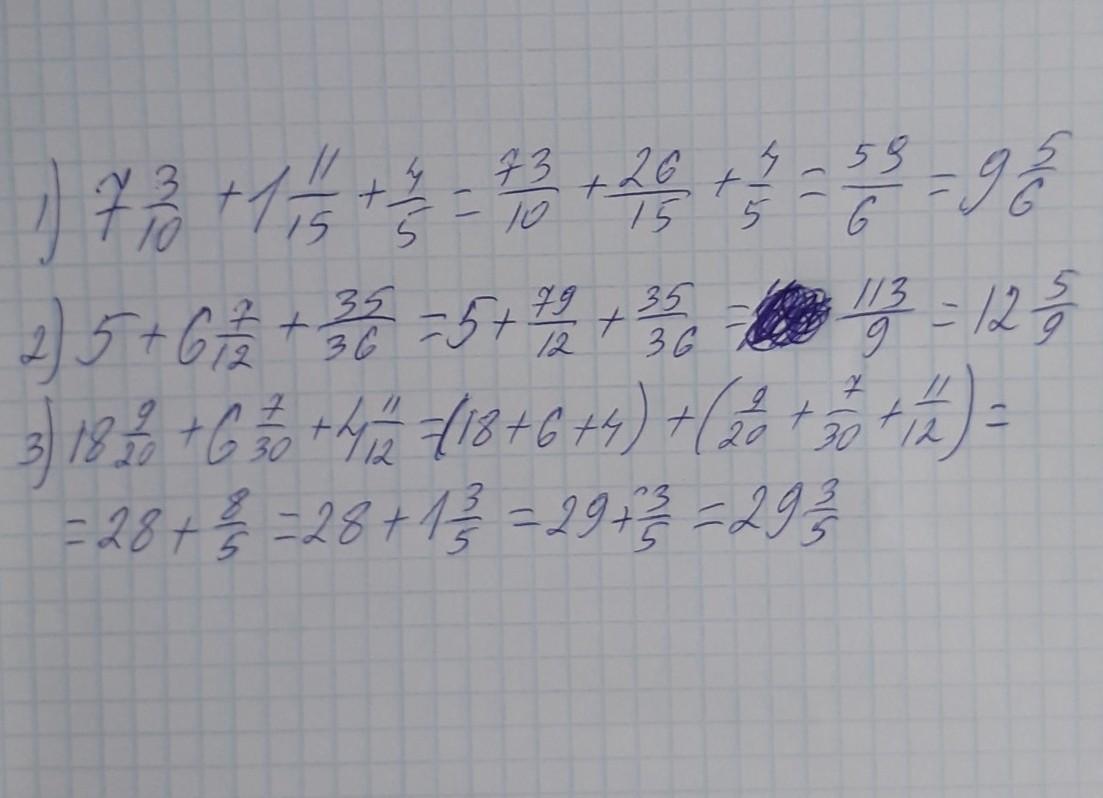 7 целые 3/10 + 1 целое 11/15 + 4/5 =