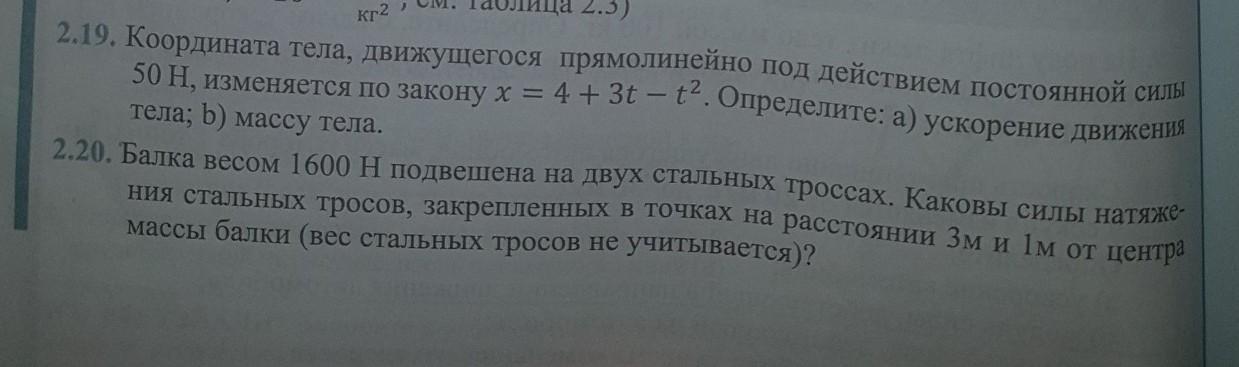Балка может вращаться или вокруг точки А, или вокруг точки В. Точка А – точка вращения. На балку в этом случае действуют силы: сила тяжести балки в точке О (середина балки), направленная вниз; сила натяжения троса FВ в точке В, направленная вверх. Запишем плечи и моменты приложенных сил: сила тяжести – плечо l₁ = АО = 3 м; М₁ =P*l₁, cила натяжения каната – плечо l₁+l₂ = АВ = 4 м; М₂ = - Fb*(l₁+l₂). Исходя из того, что сумма моментов равна 0, можно записать P*l₁=Fb*(l₁+l₂) ⇒ Fb=P*l₁/(l₁+l₂)=1600*3/4=1200 Н Fa=P-Fb=1600-1200=400 H