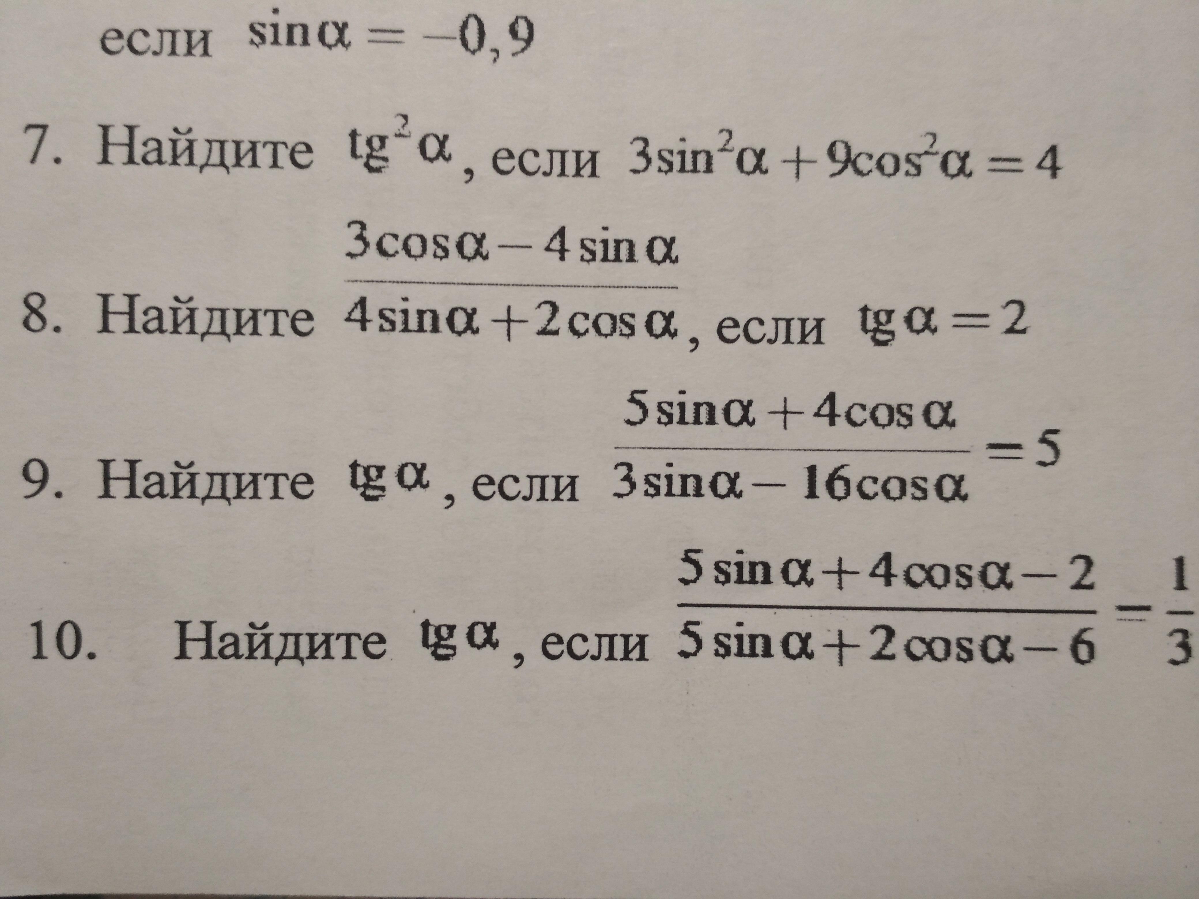 7. 3sin²a+9cos²a=4