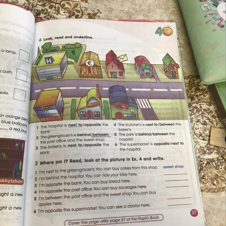 Магазин хлебобулочных изделий, 4 это возможно магазин мяса, 5 это магазин где нарисованы 2 зел. перца, а 6 это больница )