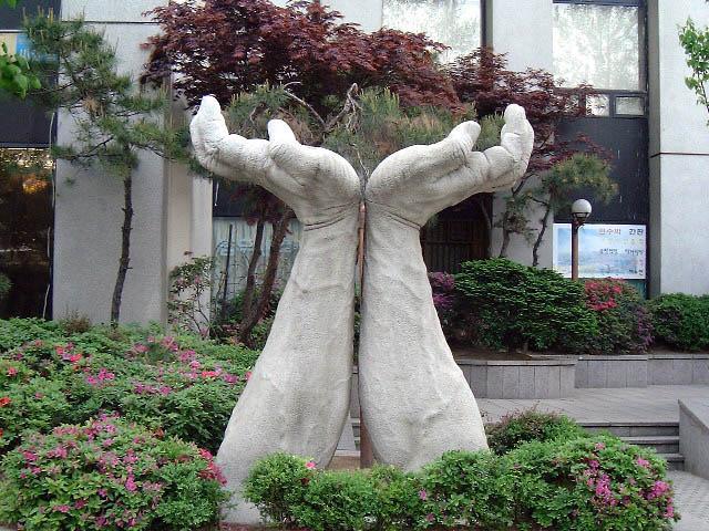 В какой стране есть статуя в виде пары рук, которые держат стручок какао-дерева?