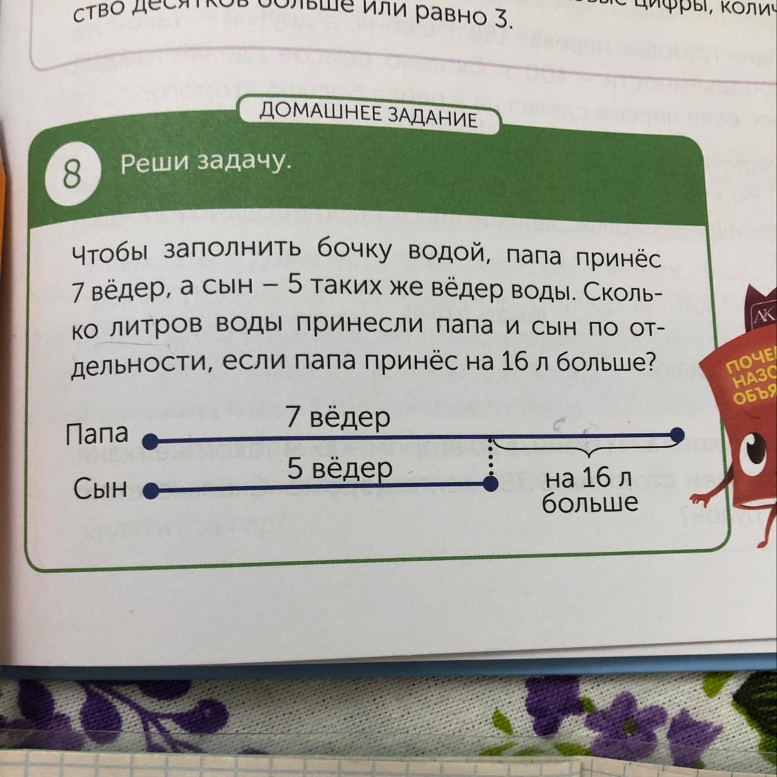 Ответ: 56 л принёс папа, 40 л принёс сын.
