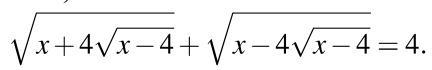√(x + 4√(x - 4)) + √(x - 4√(x - 4)) = 4