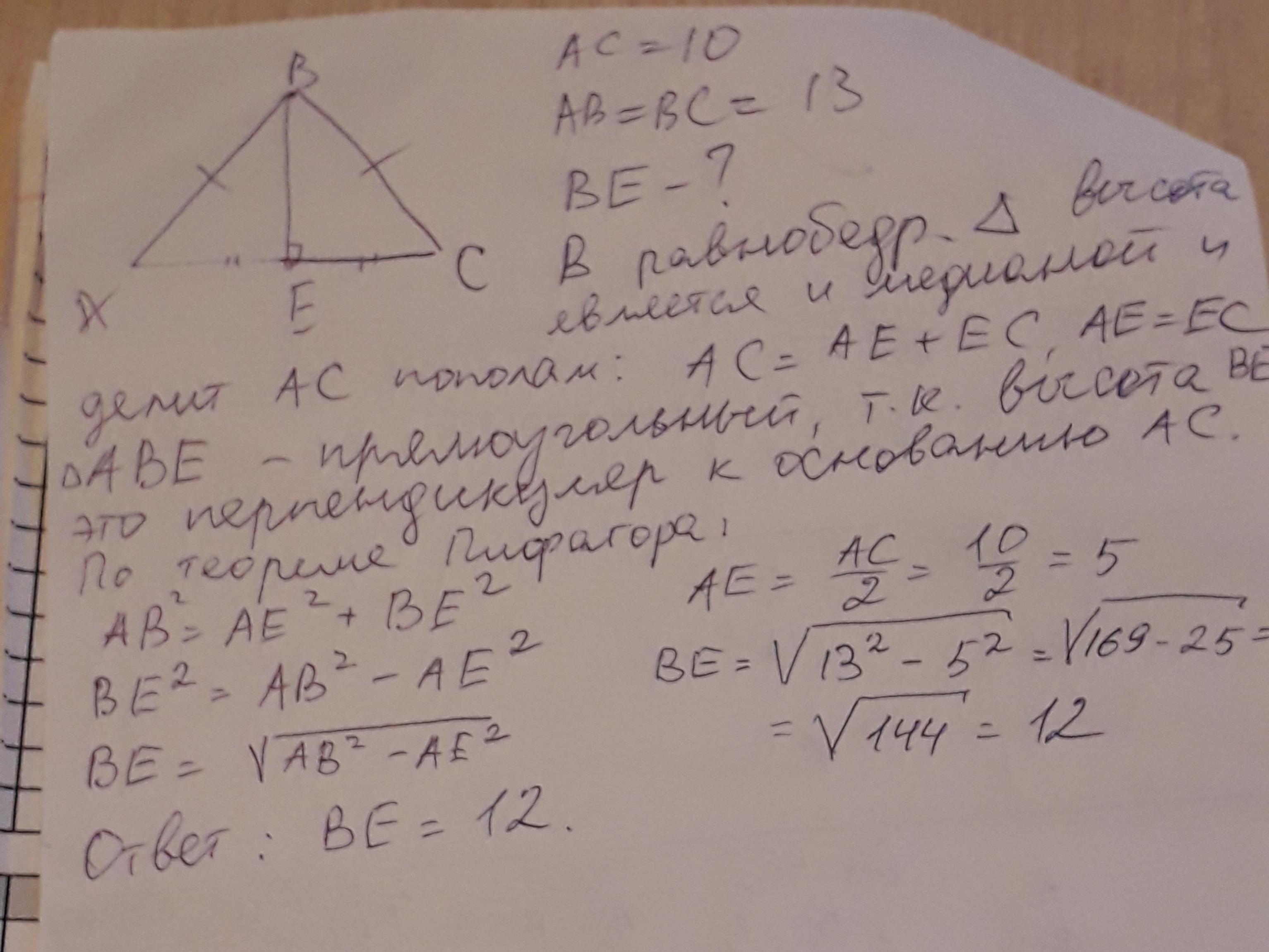 По теореме Пифагора находим высоту ВЕ как катет прямоугольного треугольника АВЕ.