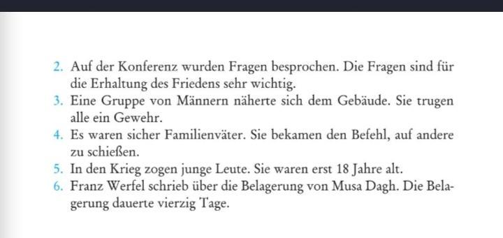6. Franz Werfel schrieb über die Belagerung von Musa Dagh, die (осада, которая) vierzig Tage dauerte.