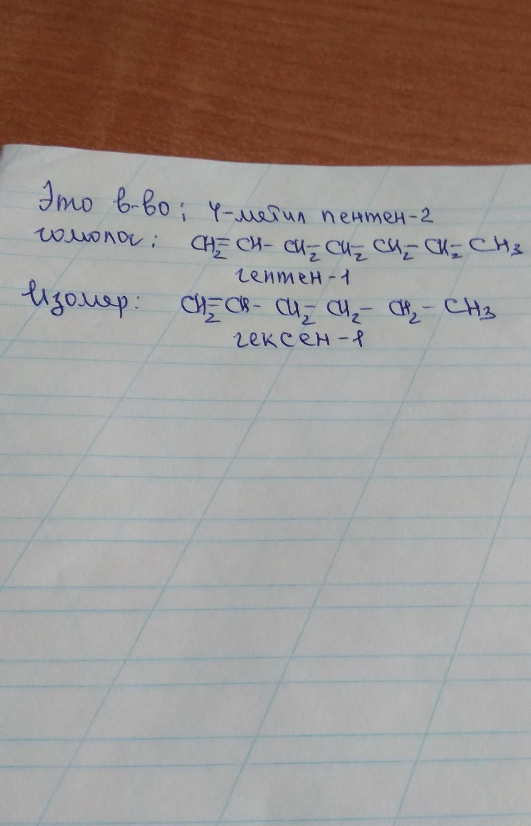 Напишите гомолог и изомер для вещества и все вещества назвать
