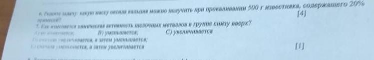 6.решите задачу. Какую массу оксида кальция можно получить при прокаливании 500 г известняка содержащего 20 % примесей.