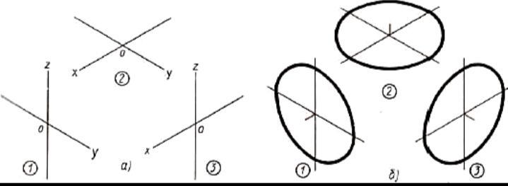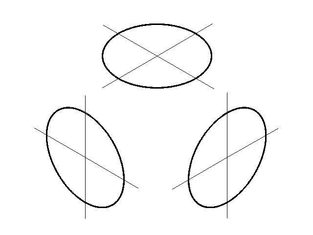 постройте овалы, соответствующие проекциям окружностей, вписанных в грани куба, данного в изометрической проекции. Сторона куба равна 80 мм