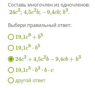 Ответ: у вас правильный вариант отмечен. Не сомневайтесь. У других вариантов совсем другие слагаемые.