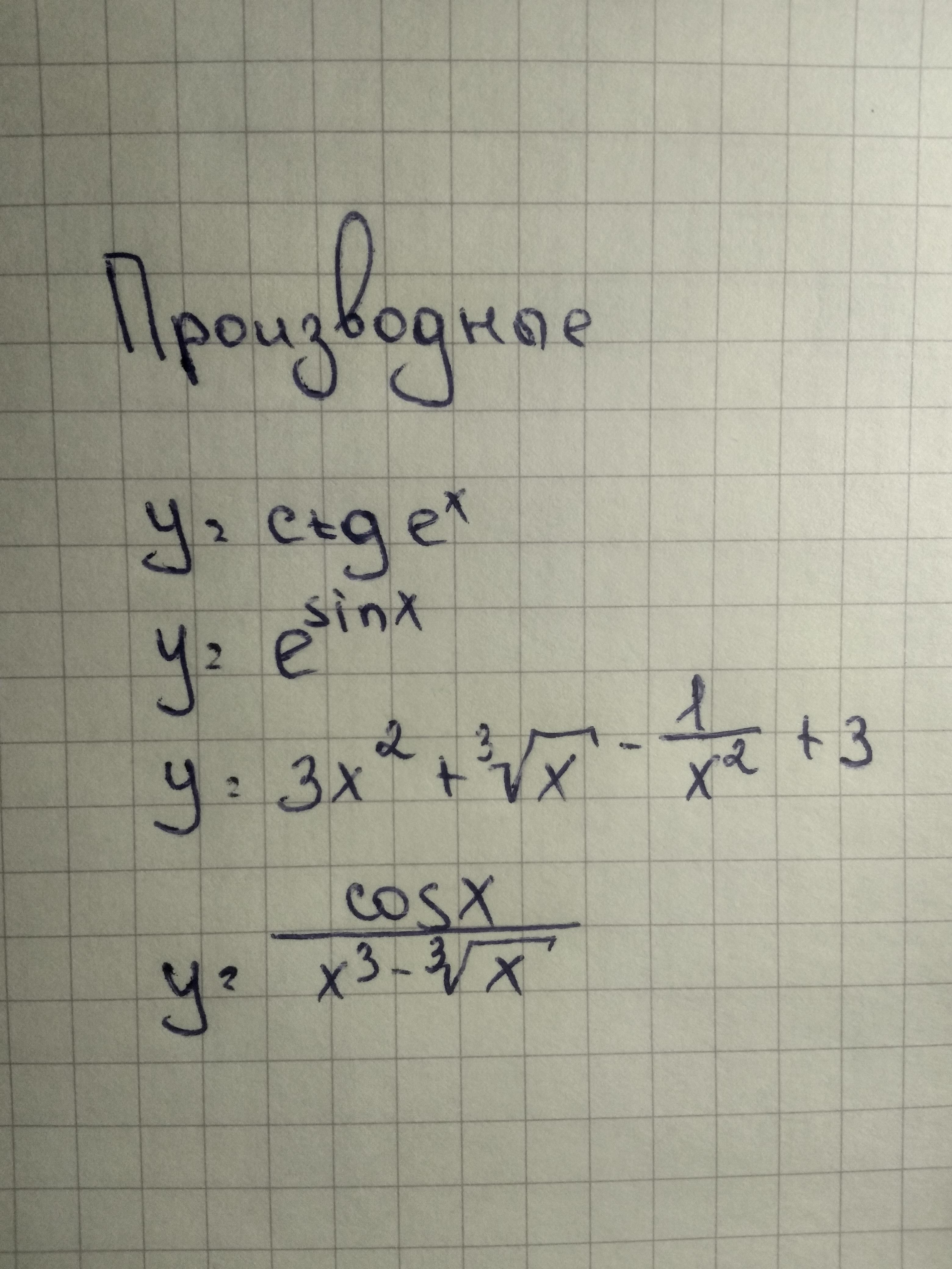 Помогите решить производные и написать (если есть) замены, формулы и методы, которые использовались, желательно решение написать на листочке
