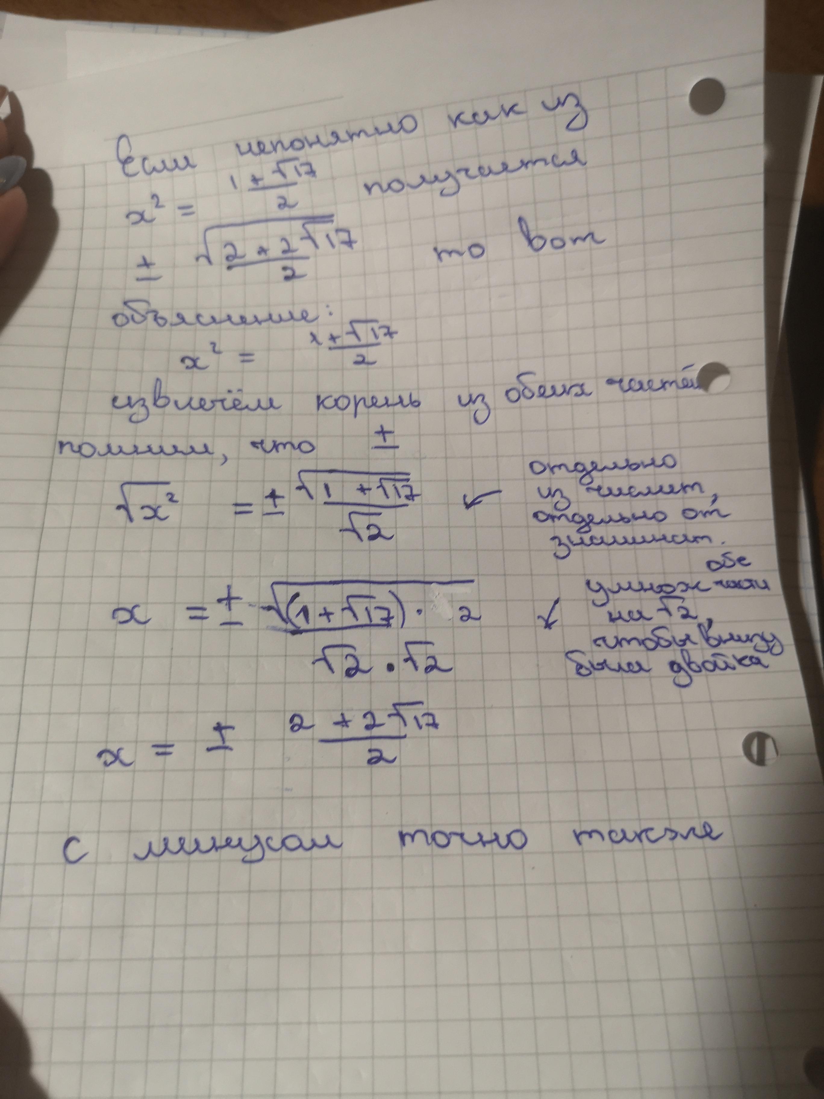 с минусом НЕ будет "точно так же"! т.к. икс в квадрате не может быть числом отрицательным, а 1-V17<0...