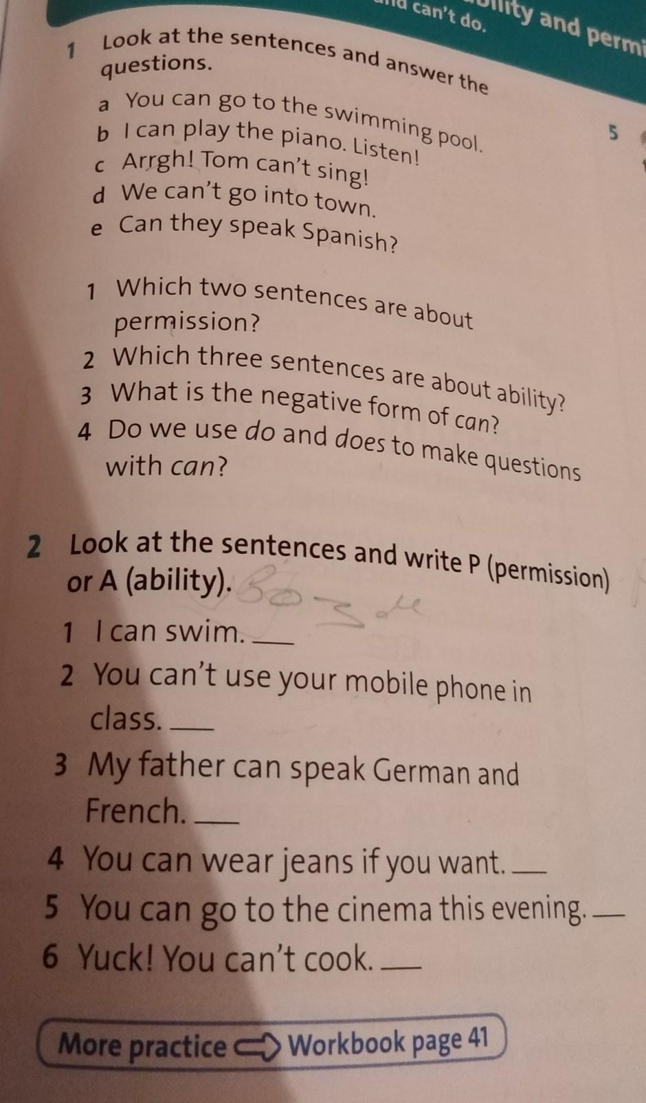 Глагол can модальный, поэтому вспомогательные глаголы с ним не употребляем (только смысловые). Ability - возможность, а permission - разрешение, дозволение.