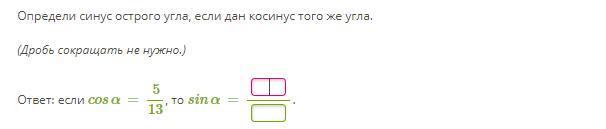 Определи синус острого угла, если дан косинус того же угла.