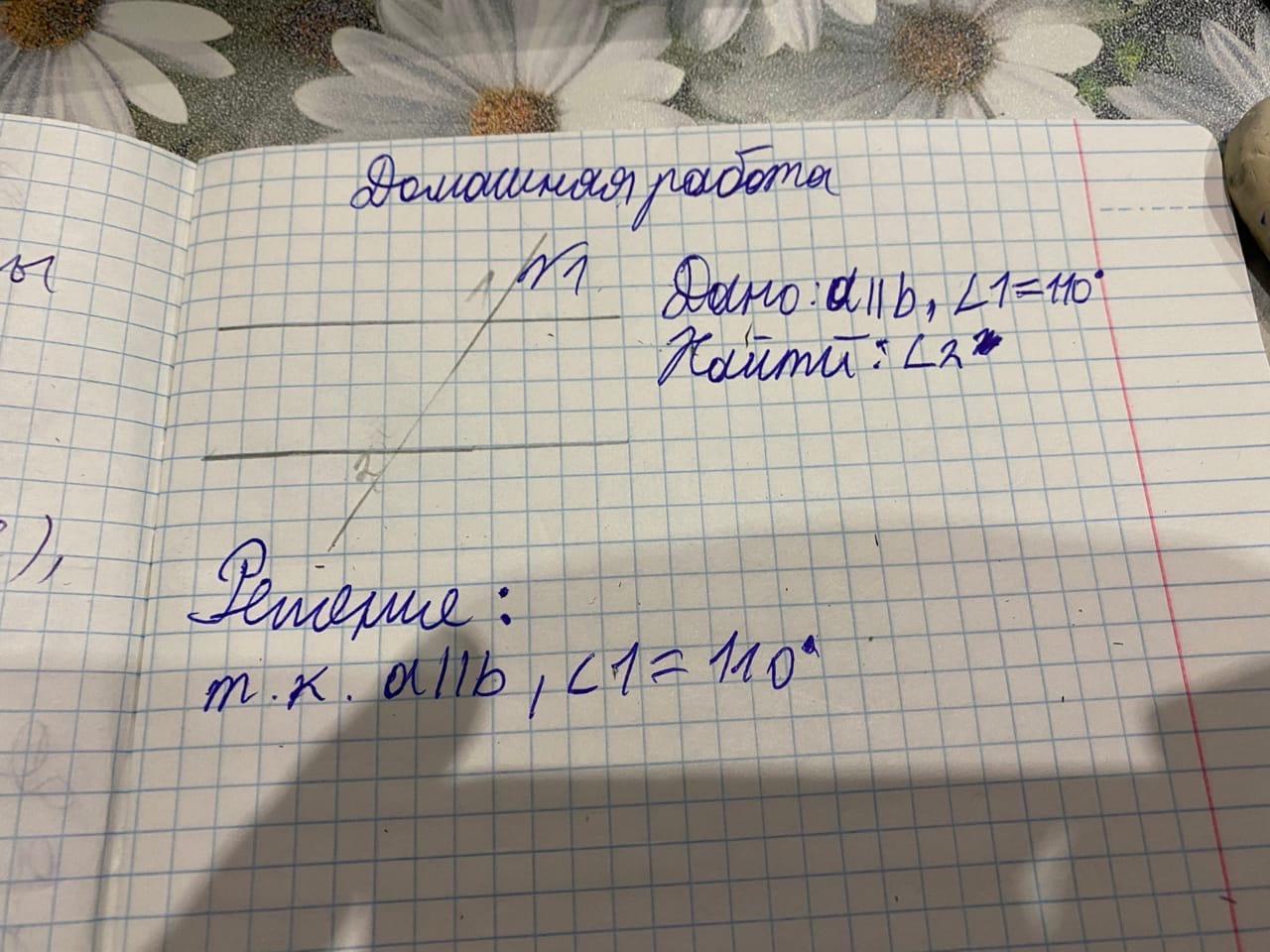Решение:т.к а параллельно в, то угол 1 равен углу 3(соответственные углы при параллельных прямых) следовательно угол 2 равен 180-110=70( т.к сиежные углы)