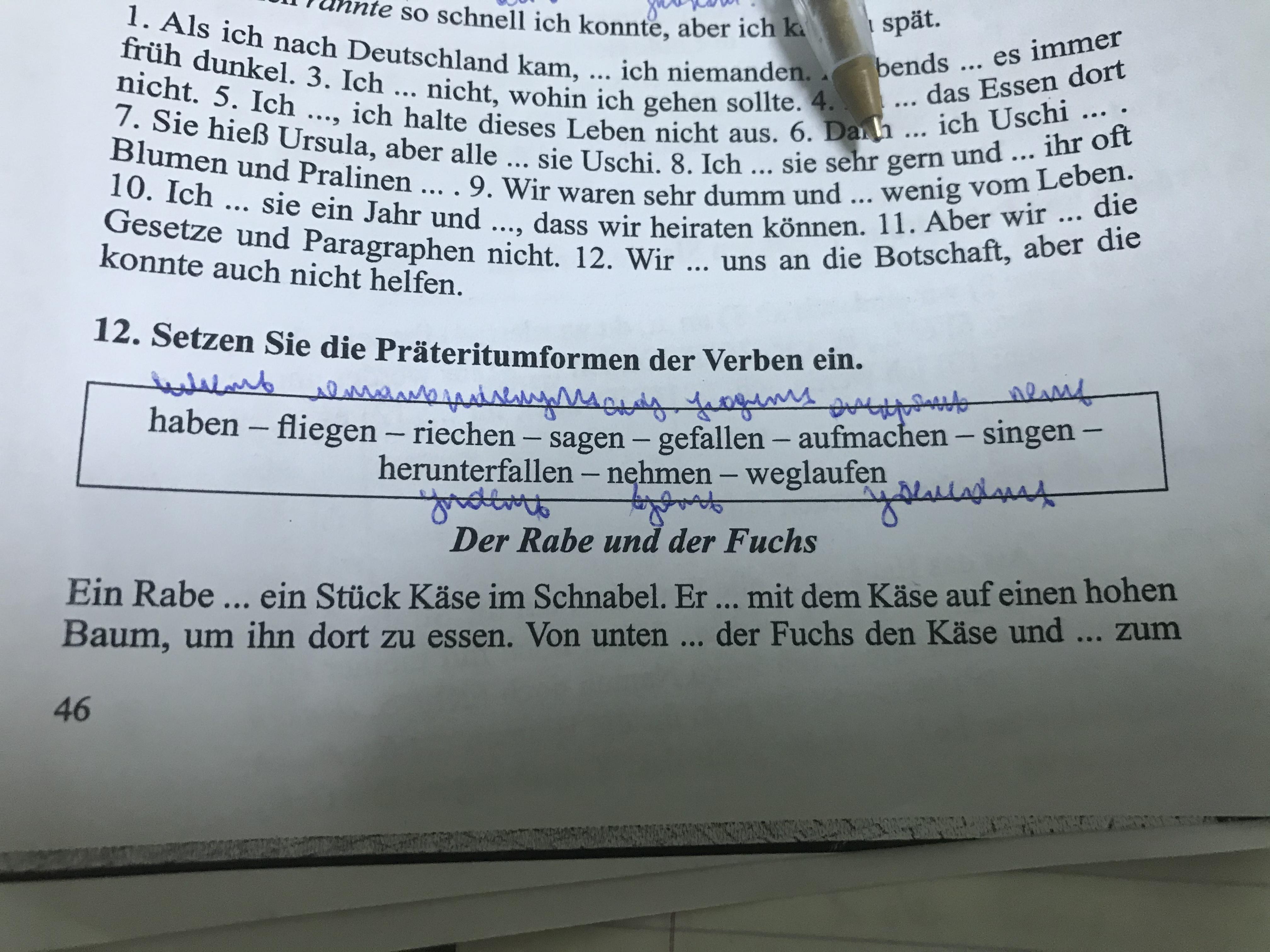 Согласно заданию слова вставлены по смыслу и в правильной форме Präteritum.