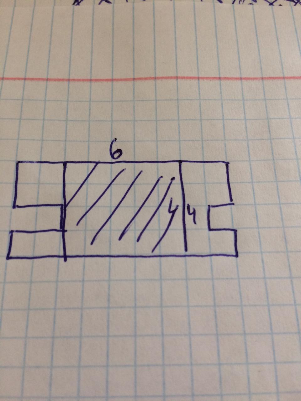2) нарисуй квадрат в центре фигуры со сторонами 6 клеточек в длину и 4 клеточки в высоту