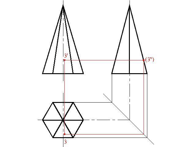 Обозначение точек в скобках говорит о том, что на данном виде точка невидимая.