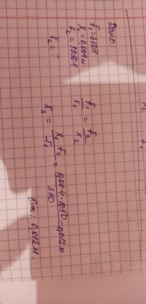 Под действием груза в 350 Н пружина динамометра удлинилась на 0,4 см.