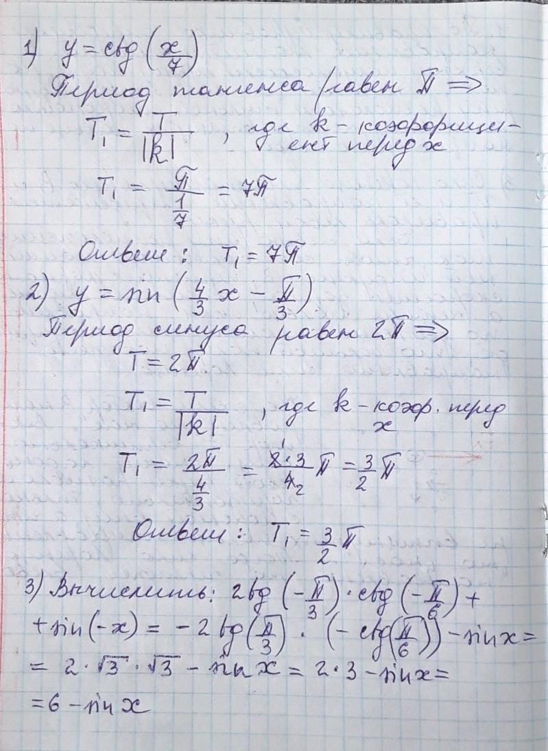 y=ctg x/7 ; y=sin (4/3x-п/3)