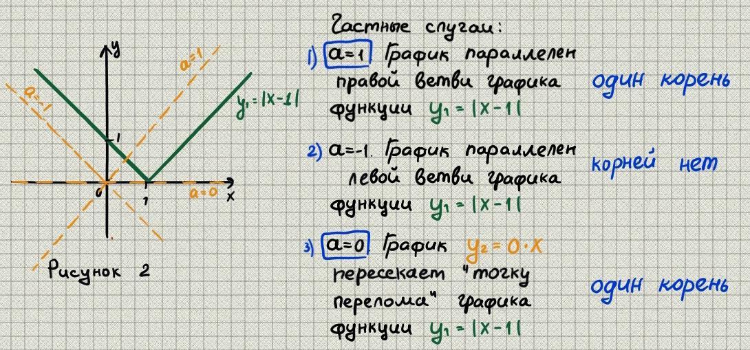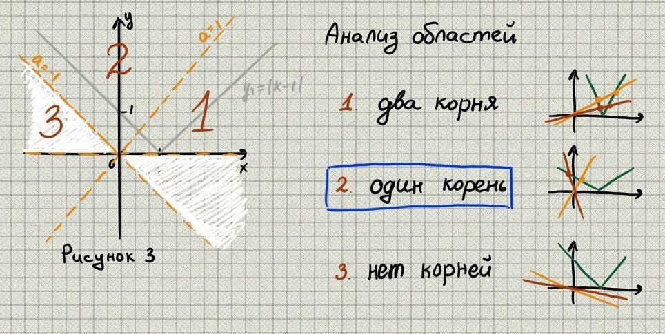 Получим, что в области 2 лежат прямые, которые имеют угловой коэффициент от 1 до бесконечности (правая часть) и от минус бесконечности до -1 (левая часть). Если кратко a ∈ (-∞; -1) ∪ (1; +∞).
