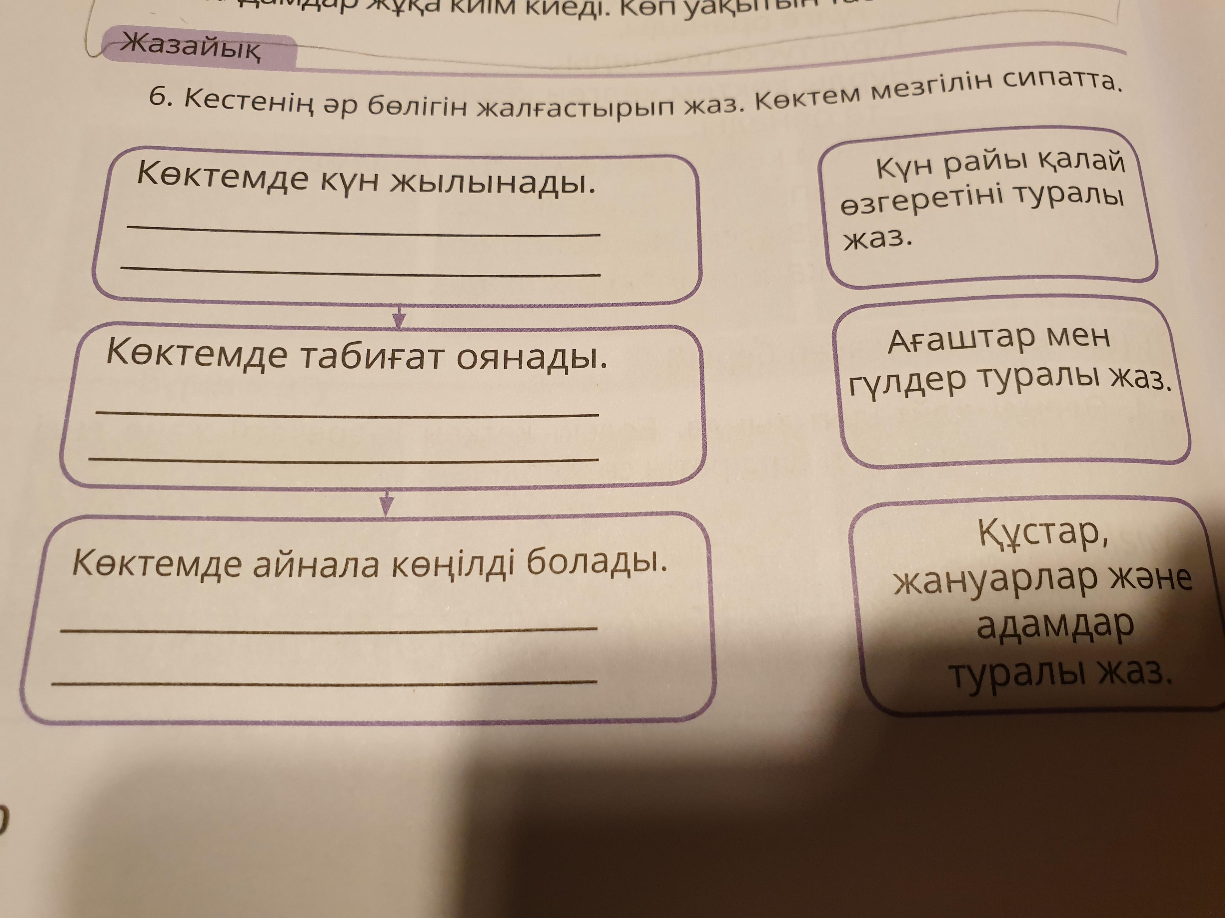 Көктемде табиғат оянады. Ағаштардан бүршік жарады. Қарды бәйшешек және басқа гүлдер жарып шығады .