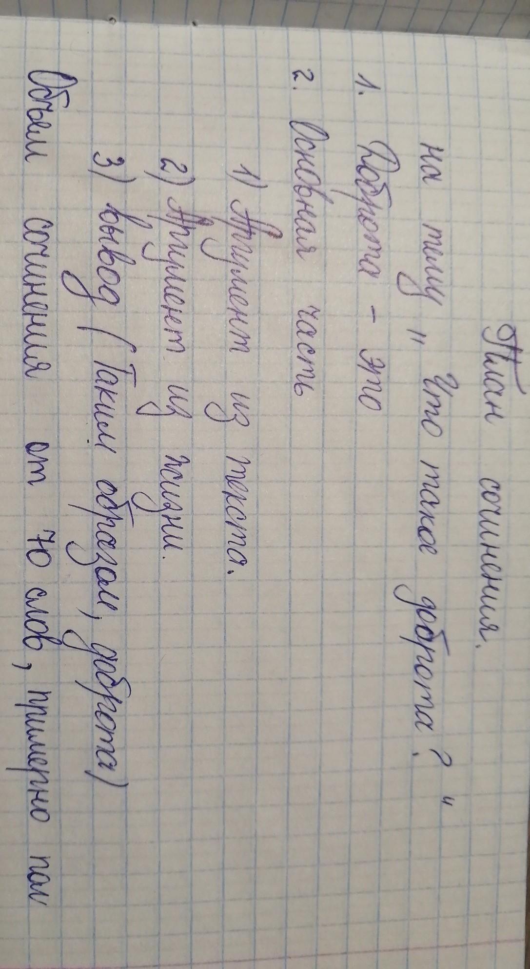 СОСТАВЬТЕ ПОЖАЛУЙСТА СОЧИНЕНИЕ НА ТЕМУ" ЧТО ТАКОЕ ДОБРОТА" ПО ЭТОМУ ПЛАНУ.