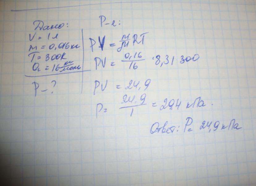 В закрытом сосуде вместимостью 1 л содержится газ массой 16 г найдите давление газа при температуре 27 если этот газ азот