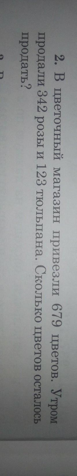 1) 342 + 123 =465.( цв.) - продали.